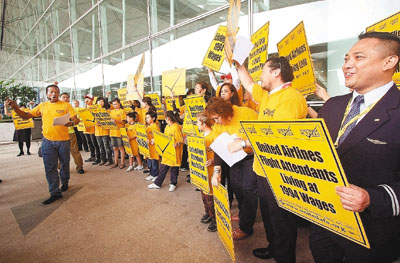 聯合航空空中服務員工會香港分會發言人溫曼莉表示,員工在2002年與公司共渡時艱,自願減薪30%,工資僅為1994年的水平,工作量卻較2002年增加48%,有關合約條款已於今年一月到期。她指出,工會與公司去年開始談判,至今整整一年,但仍未就新合約達成協議,公司更要求將員工每天的飛行及候命時間,由14小時增至17小時,明顯缺乏誠意。