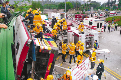 ■旅遊巴當日在西貢公路南邊圍迴旋處失事共釀19死43傷。 資料圖片