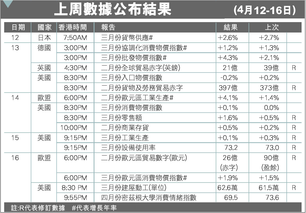 上周數據公布結果(4月12-16日) (圖)