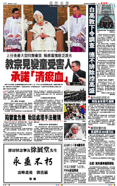 飽受天主教神職人員孌童醜聞困擾的教宗本篤十六世,昨日在地中海島國馬耳他與一批孌童受害者會面,期間教宗罕有地回應事件,承諾教廷將盡一切所能調查指控,並會將所有犯罪神職人員繩之以法,確保不會再有兒童受害。