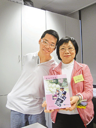 ■蘇偉健與媽媽(右)風雨同路,媽媽把經歷寫成《給兒子的信:痙攣兒照顧者的自白》一書。本報記者鄭佩琪 攝