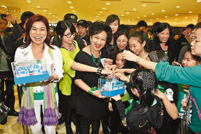 ■薛家燕出席籌款活動時,不少市民爭相捐錢支持。