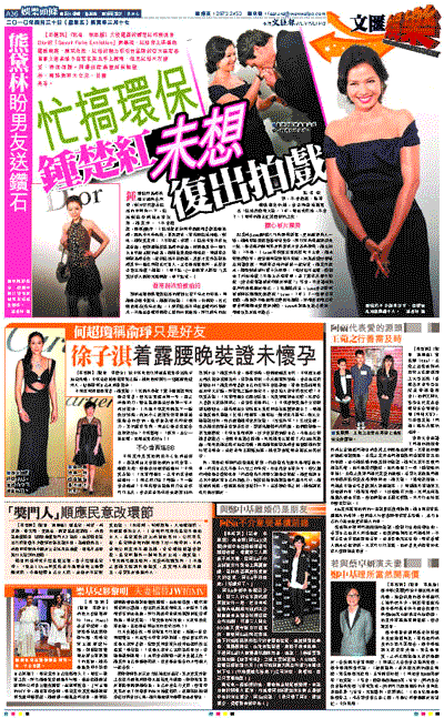 【本報訊】(記者 李思穎)久沒露面的鍾楚紅昨晚現身Dior的「Savoir Faire Exhibition」開幕禮,紅姑穿上深藍色露肩晚裝,風采依然,紅姑的魅力吸引到品牌的亞太區常務董事文迪高情不自禁在其玉手上輕吻,但見紅姑大方接受,表現得體。同場出席嘉賓尚有熊黛林、馬詩慧和大女兒、甘國亮等。