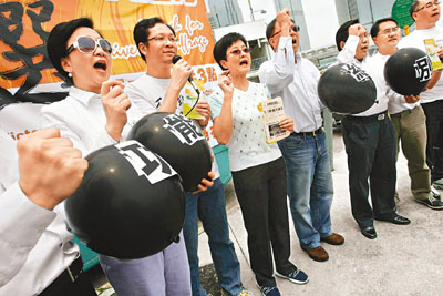 終極普選聯盟昨日以宣傳車造勢,並於今日就政改問題發起遊行。被問及社民連鼓吹支持者杯葛是次遊行會否影響參與人數時,「普選聯」副召集人蔡耀昌拒絕評估是次的遊行人數。本報記者梁祖彝 攝