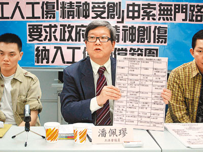 ■工聯會立會議員潘佩璆促請政府修例,把精神創傷納入工傷賠償範圍。