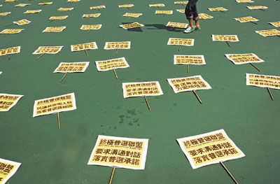 ■普選聯爭取普選大遊行,未達預期的萬人,僅千餘人參加。 本報記者劉國權 攝