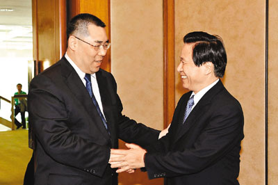 ■崔世安與江蘇省委書記梁保華會面。