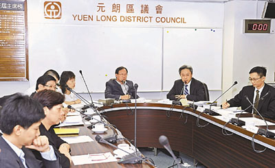 元朗區議會昨日舉行會議,討論特區政府的2012年政改方案新建議,政制及內地事務局常任秘書長羅智光出席聽取各議員的意見。