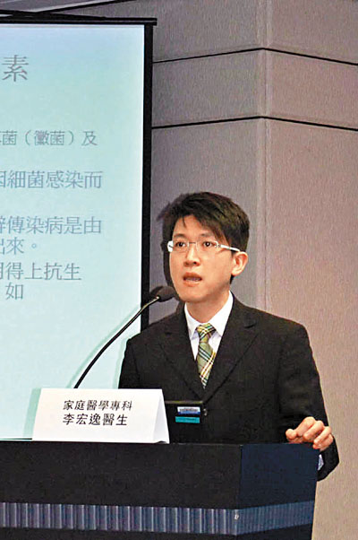 家庭醫學專科醫生李宏逸指出,抗生素並不是萬靈丹,它只針對因細菌感染而引起之疾病,「傳染病是由病原體入侵人體或產生毒素所致,這些病原體為可分為細菌、病毒、真菌(黴菌)及寄生蟲等,而抗生素只對抗細菌有效,由於一般的流行性感冒,流鼻水、咳嗽等,是由病毒所引起,所以服用抗生素是無效的。」