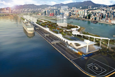 啟德郵輪碼頭大樓2013年落成後,勢成香港新地標。設計圖片由商務及經濟發展局提供