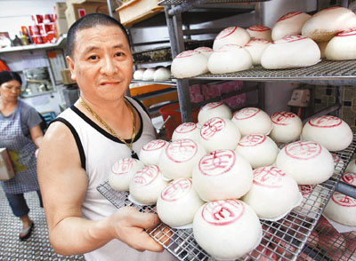 ■郭錦華嘆道,平安包最重要的製作材料如砂糖及麵粉,成本較一年前上升一倍,估計利潤會因此至少下跌10%。 本報記者劉國權攝
