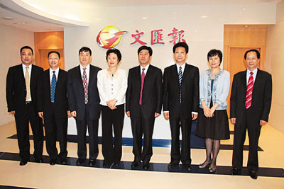 四川省資陽市委書記李佳(左四),市長羅勤宏(右三)一行昨訪本報,受到本報董事總經理顧行偉,副總編輯張建華,副總經理吳建芳等的熱情接待。