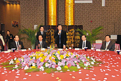中共天津市委副書記、濱海新區書記何立峰(站立者)宴請訪問團。