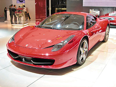 一直被傳為Ferrari 430後繼車款的458 Italia亦首次於車展內現身,外形更流線更前衛的458 Italia,一身超低扁平曲線設計,相比F430有更佳的風阻系數值。性能上458 Italia當然亦不負眾望,它的動力源自一台4.5公升V8引擎,及7前速雙離合器加減自動波箱,最大馬力輸出570hp/9000rpm,最大扭力55.1kgm/6000rpm,起步加速0-100km/h不到3.4秒,極速更高達325km/h。