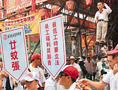 ■飄色表演中小童扮演「廿蚊張」,諷刺立會議員張宇人的最低工資論。