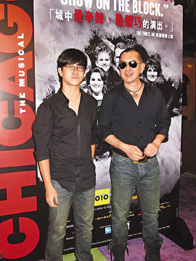 【本報訊】黃秋生、原子鏸、徐子珊、Rosemary、趙世曾等前晚到香港演藝學院欣賞音樂劇《芝加哥》,與兒子齊齊到場的秋生表示,兒子現在十三歲,因為他想看該劇,才帶他來欣賞。問到他兒子想不想加入娛樂圈?他謂沒有興趣,但之前就與兒子拍過杜琪峰一齣戲,電影尚未上畫。