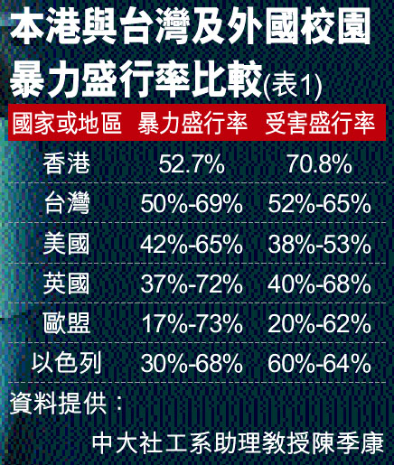 本港與台灣及外國校園暴力盛行率比較(表1) (圖)