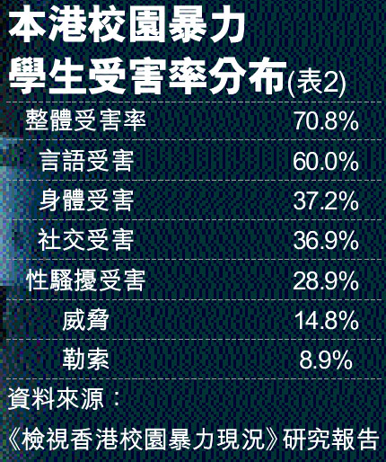 校園欺凌嚴重 7成港生曾受虐 (圖)