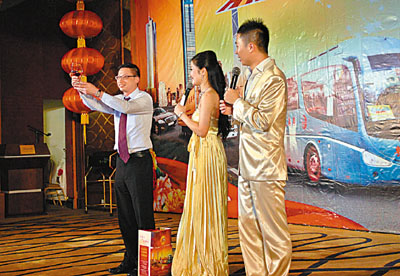 現場抽得特等獎的客戶感謝粵港公司給他帶來好運