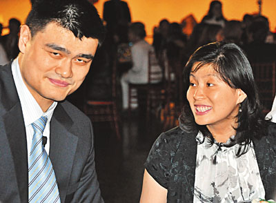 ■姚明(左)與太太葉莉滿肚密圈?資料圖片