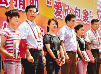 【綜合新華社合肥25日體育專電】「九球天后」潘曉婷,25日同四體會桌球比賽的「雙冠王」付小芳和劉莎莎一同來到合肥市郵政廣場,參加「愛心包裹」公益捐助活動(見圖)。潘曉婷在活動中宣讀了「愛心包裹」倡議書,她號召社會各界以小包裹奉獻大愛心,力所能及地幫助貧困地區和災區兒童。據悉,本次活動所售出指定郵品的收益將全部用於捐助「愛心包裹」,並由合肥市郵政局直接寄往玉樹災區及安徽貧困地區孩子的手中。