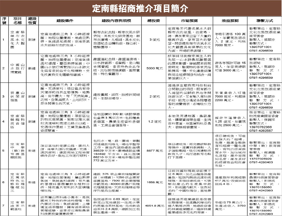 定南縣招商推介項目簡介 (2010-05-28) (圖)