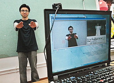 【本報訊】將太極融合科技,會否吸引更多年輕人學耍太極?一班城市大學科學及工程學院學生,透過畢業作品展現具創意的科技,其中就讀電子工程學系的莊煒霖用了一年時間,設計出「互動太極拳系統」,系統會播放太極拳的片段,用家根據招式提示耍太極,只要動作正確,便可「升呢」挑戰全部24式,「以遊戲形式耍太極,又可在室內隨時操練,即使完全未接觸過太極或繁忙的上班一族,都可輕鬆學會正宗太極拳。」