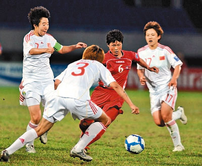 【本報訊】女足亞洲盃4強戰昨日在成體中心展開,第6次衝擊世界盃的中國女足,加時下半場被金景花攻破大門,終以0:1不敵衛冕的朝鮮隊;國家隊需要通過30日的季軍戰,與日本隊爭取出戰世界盃的機會。至於殺入決賽的朝鮮及澳洲,兩軍順利拿下2011年世盃入場券。