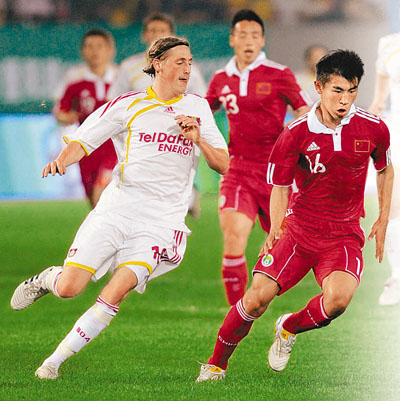 國足名單如下:曾誠、趙鵬(河南建業),鄧卓翔、崔鵬(山東魯能),陳濤(上海申花),閆峰(長春亞泰),白磊、何楊(天津泰達),朱挺、李學鵬(大連實德),關震(江蘇舜天),于海、曲波、趙旭日(陝西中建),劉健(青島中能),劉建業、汪強(長沙金德),杜威、榮昊(浙江綠城),于漢超、楊旭(遼寧),郜林(廣州廣汽),馮瀟霆(韓國全北現代)。
