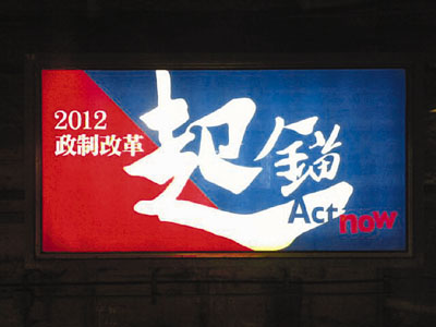 【本報訊】(記者 鄭治祖)特區政府為2012政改方案展開新一輪宣傳攻勢,「頭炮」是港鐵車站出現新一輯廣告,大字標題寫著口號「起錨」(見上圖),而有報道指,特區行政長官曾蔭權與問責班子今日會進行花車巡遊,穿梭港九新界多處地方兼落區派傳單。