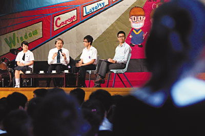 ■曾俊華昨與約500名師生就2012政改方案交換意見。 本報記者莫雪芝 攝