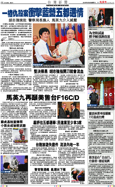 報道稱,台中治安問題不但可能重挫台中選情,就連馬政府好不容易止跌回升的民調也可能受到衝擊,馬英九親下指導棋,就是要設下防火牆,以免治安事件演變成政治風暴。