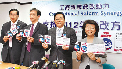 ■「工商專業政改動力」向全港逾247萬住戶和工商企業發出支持政改卡片的通函,呼籲支持政改方案。本報記者 攝
