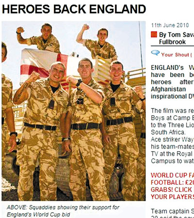 這部紀錄片是在駐阿富汗的英軍營地拍攝後,被送到了英格蘭隊在南非的大本營;「王牌」朗尼和他的隊友擠在一張桌子邊觀看了這部紀錄片。隊長謝拉特表示,球隊看完這部片子後受到了極大的鼓舞;他說,「我們收到了來自駐阿富汗士兵的一個DVD,祝福我們在世界盃上走到最後。這真的很感人。這部紀錄片讓我明白此時我身在這裡是多麼幸運,我們也明白他們在那裡的情況。它確實讓所有事情變得很清楚,我們支持他們,他們支持我們。」