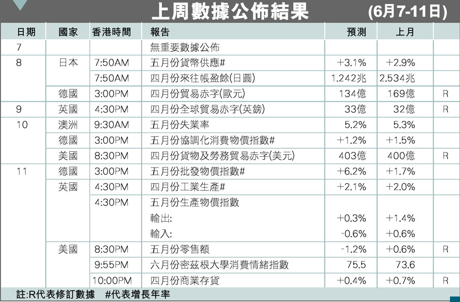 本周數據公佈時間及預測(6月14-18日) (圖)