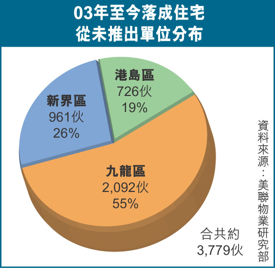 03年至今落成住宅從未推出單位分布 (圖)