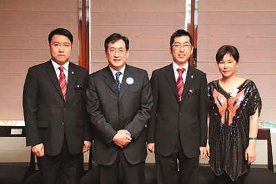 ■東華三院主席梁定宇(右二)、東華三院副主席陳婉珍(右一)、東華三院主席馮敬偉(左一)與周一嶽局長合照。