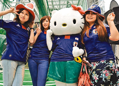 日本隊將於今日世盃出戰首仗,昨日不少日本少女帶同Hello Kitty到南非為國家隊打氣。法新社