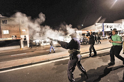 ■南非警察發射橡膠子彈驅趕示威者。 法新社