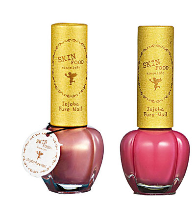 做好了手部護理,當然也要為美甲扮扮靚。SKINFOOD可可巴亮麗修護指甲油Jojoba Pure Nail,以營養豐富的可可巴油所製成,能為脆弱易斷的指甲形成堅固的保護層,補充指甲所需營養,維持指甲健康。為了令指甲增添溫柔嫵媚的感覺,可可巴亮麗修護指甲油以粉色及珍珠色調為主,突顯與別不同的少女情懷。