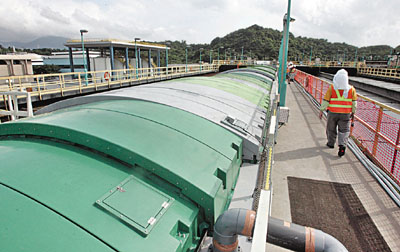 ■渠務署現正在昂船洲污水廠進行覆蓋及辟味工程,減少污水沉澱池釋出的硫化氫對周遭民居的影響。本報記者劉國權 攝