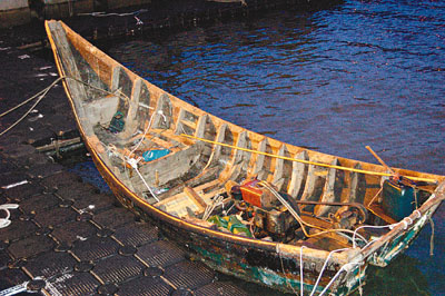 ■水警在大嶼山分流角截獲的機動木船。