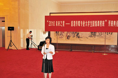 中大新聞與傳播學院陳景龍代表本屆國情班學員發言。他表示,年輕的傳媒系學生應當透過這個國情課程班,以敏銳的視野去認識中國的發展,掌握未來的動態,從中找尋新聞題材。是次參加國情班的百餘名港生專程來到首都,不僅為了看名勝古跡,更多地是希望了解國情。同學還將與中國傳媒大學的學生交流,一起參觀多間中央級新聞機構,一起研究內地傳媒的發展。