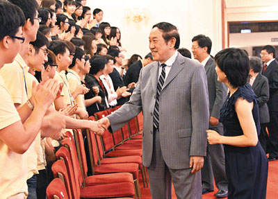 蔣樹聲副委員長與學員親切握手。 本報北京新聞中心實習記者李茜婷 攝