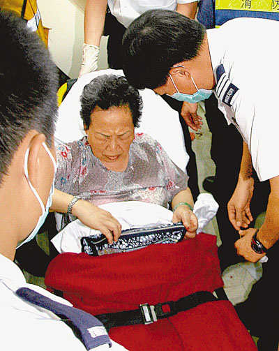 ■被組合櫃壓傷的老婦送院。 本報記者溫瑞麟 攝