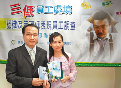 ¡@°ò·þ±Ð®a®xªA°È¤¤¤ßÁÒ¤U¬Õ¤O¹µûªA°ÈÅU°Ý¡A©ó¤µ¦~5¤ë³X°Ý¤F502¦W¦b¾¤H¤h¡Cµ²ªGÅã¥Ü¡A¨ü³XªÌ³Ì¤£³ßÅw»P¤u§@ºA«×´c¦H¡B±¡ºü´¼°Ó§C©Î¤í¯Ê¤u§@¼ö¸Ûªº¡u3§C¡vû¤u¦@¨Æ¡C¦Ó¡u3§C¡vû¤u¥ç¦³¨ä¡u¥Í¦s¤§¹D¡v¡A¨ü³XªÌ«ü¸ÓÃþû¤u·|¥H¡u¤Ö°µ¤Ö¿ù¡vªººA«×¤u§@¡A¤S¾Õ©óÁͪ¢ªþ¶Õ¡A¥H¤Î»P¦³Åv¶Õ¤H¤h«Ø¥ß¨}¦n¤H»ÚÃö«Y¡A¥H¦¹¤â¬q±»¹¢°½Ãiªº¤u§@ºA«×©M¯à¤O§C¤U¡A³¡¤À¡u3§C¡vû¤u¾Õªø¡u¸Ë¦£¡v¤Î¡u¸Ë§@YµL¨ä¨Æ¡v¡C´¶¹M¨ü³XªÌ»{¬°¡AÃø»P¡u3§C¡vû¤u·¾³q¡A¦Ó¦³Ãöû¤u¥ç·|©ìºC¤u§@¶i«×¡A¬G¤£¤ÓÄ@·N»P¥L̦X§@¡C