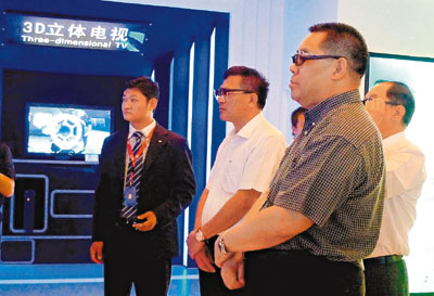 ■崔世安一行參觀惠州生產的3D電視。中新社