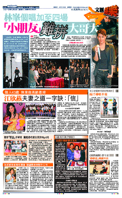 近日有傳無線力谷林峰跟古巨基爭奪年底《勁歌》的「最受歡迎男歌手」,樂小姐說:「佢(林峰)係小朋友,茗砲出薄A慢慢先,開到四場已經好幸運,電視劇效應都幫到佢好多,唔可能同樂壇大哥大比拼,仲有好耐的日子學洁C」問到會否安排林峰開Part2?她說:「唔好喇!佢要拍劇,出年先算。」