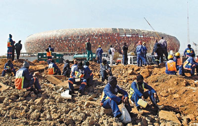 根據不完全統計,今年前4個月,南非已經失去了7.9萬個原來因為世界盃而出現的非農業工作職位,這意味著有同樣數目的人被迫失業。截止3月份前的一年中,南非已經有24.2萬人失業,失業率達到25%以上,如果算上部分已經放棄求職的人,失業率更是超過了30%。