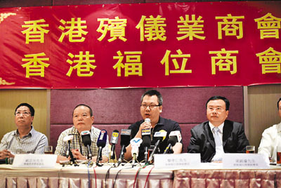 ■黎孝仁(左三)指,商會保守估計全港不合規格骨灰龕位多達10萬個,相信當局難以於3個月內制訂名單。